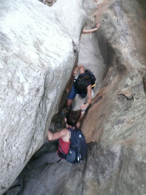 I començam la travessia pel torrent cap amunt. Seran devers 2 horetes i mitja per arribar a s'Entreforc, on dinarem